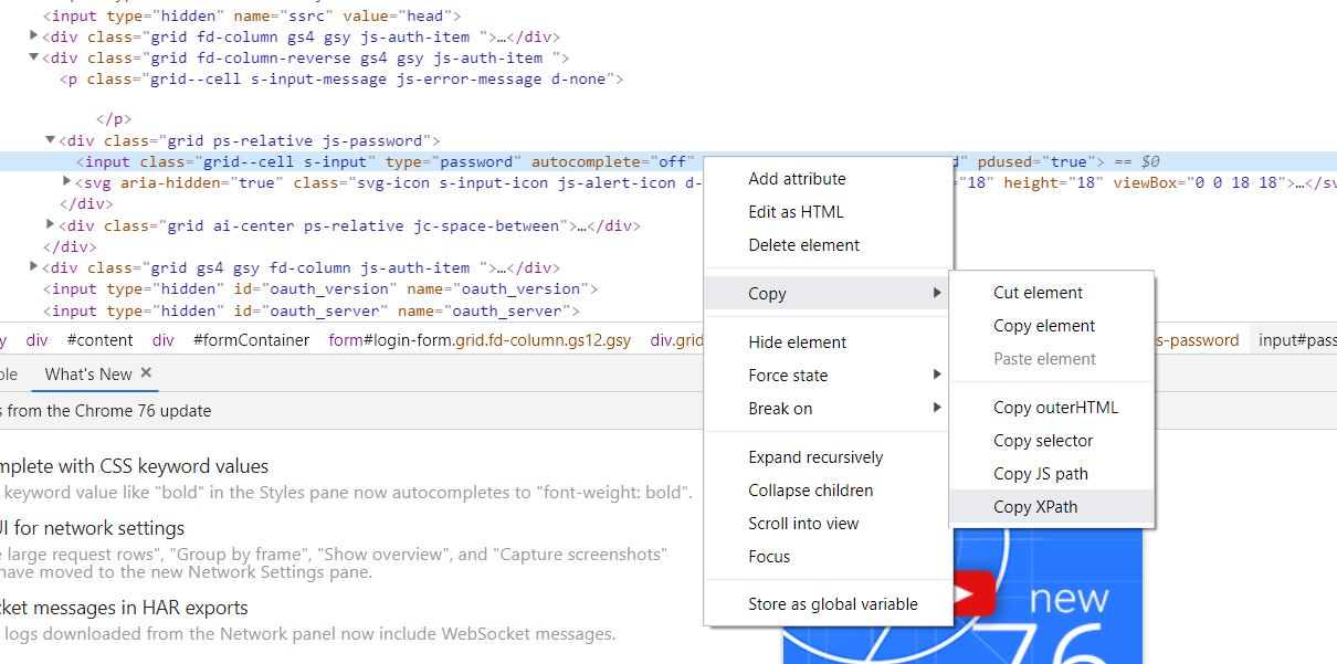 place the mouseholder where you need to find the xpath, here the username , password field and login button -> Right click-> inspect -> A window will open with id parameter -> right click -> copy -> xpath