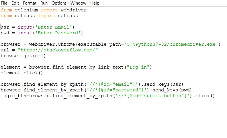 We are here automating the login to a website stackoverflow.com , by running a python code